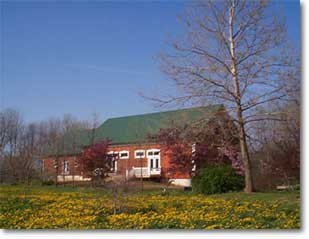 The 1880s Crow timber frame barn was originally used for storage of hay/feed and for providing shelter to livestock. The large structure was moved from the neighboring farm in 1997; renovations began in 1998. The first workshops taught at the barn were in 2001. |